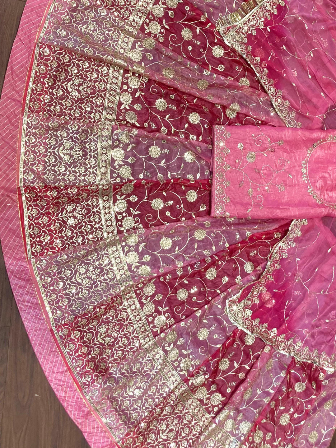 16 Kali Gher Gold Crush Rajputi Poshak with Laffa gotta Border Work in Pink color-91675