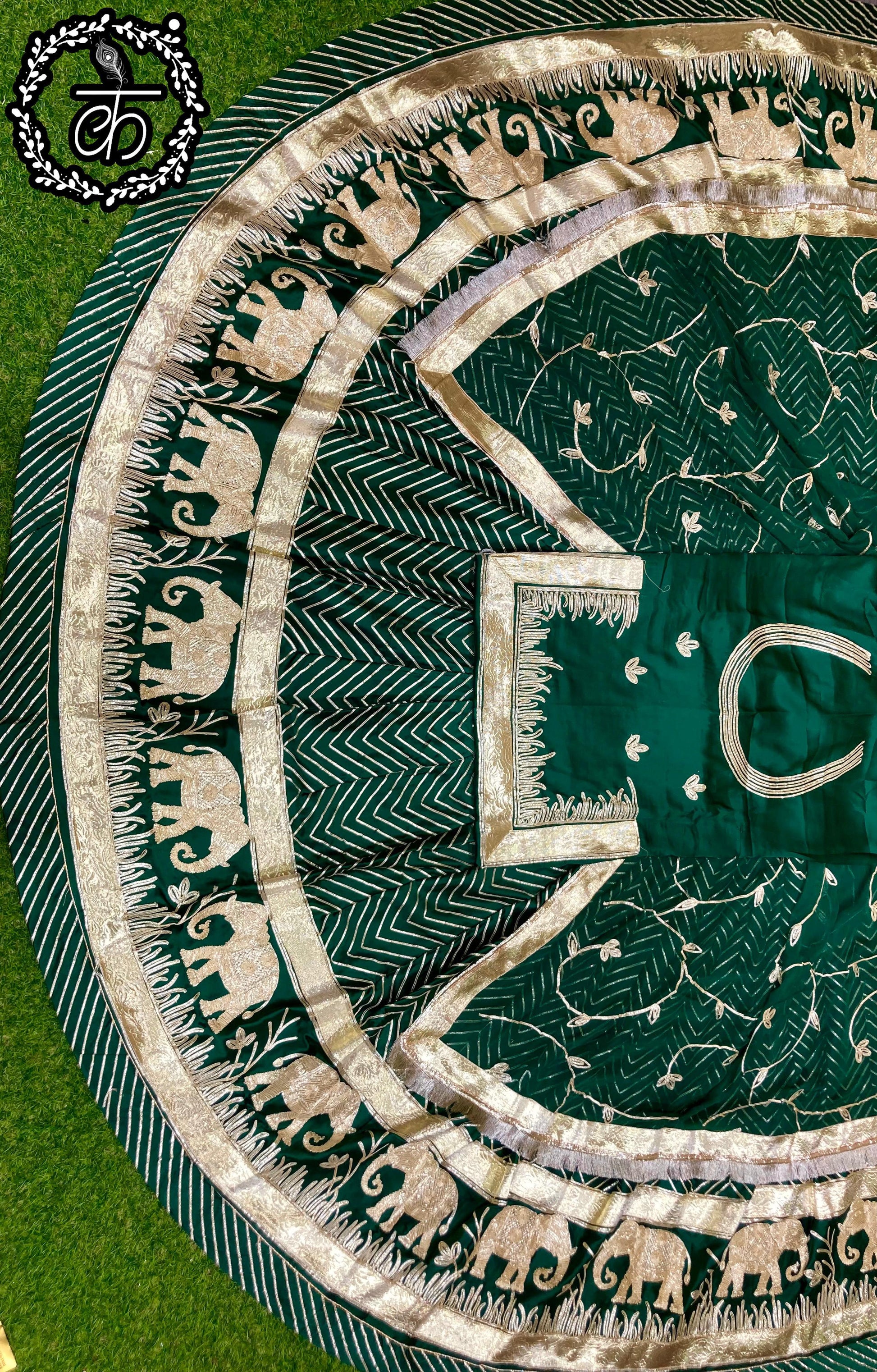 4 Meter Full Gher Satin Humarahi Pure Wedding Traditional Rajputi Poshak with Seekiya Gotta work-61028