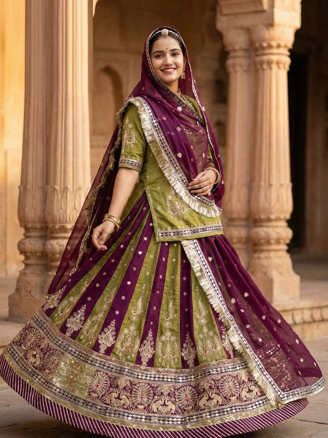 The Semi-stitched Lehenga Waist and Hips are Customizable from 28 to 40 inches and from 32 to 44 inches respectively and Lehenga Length is 42 inches