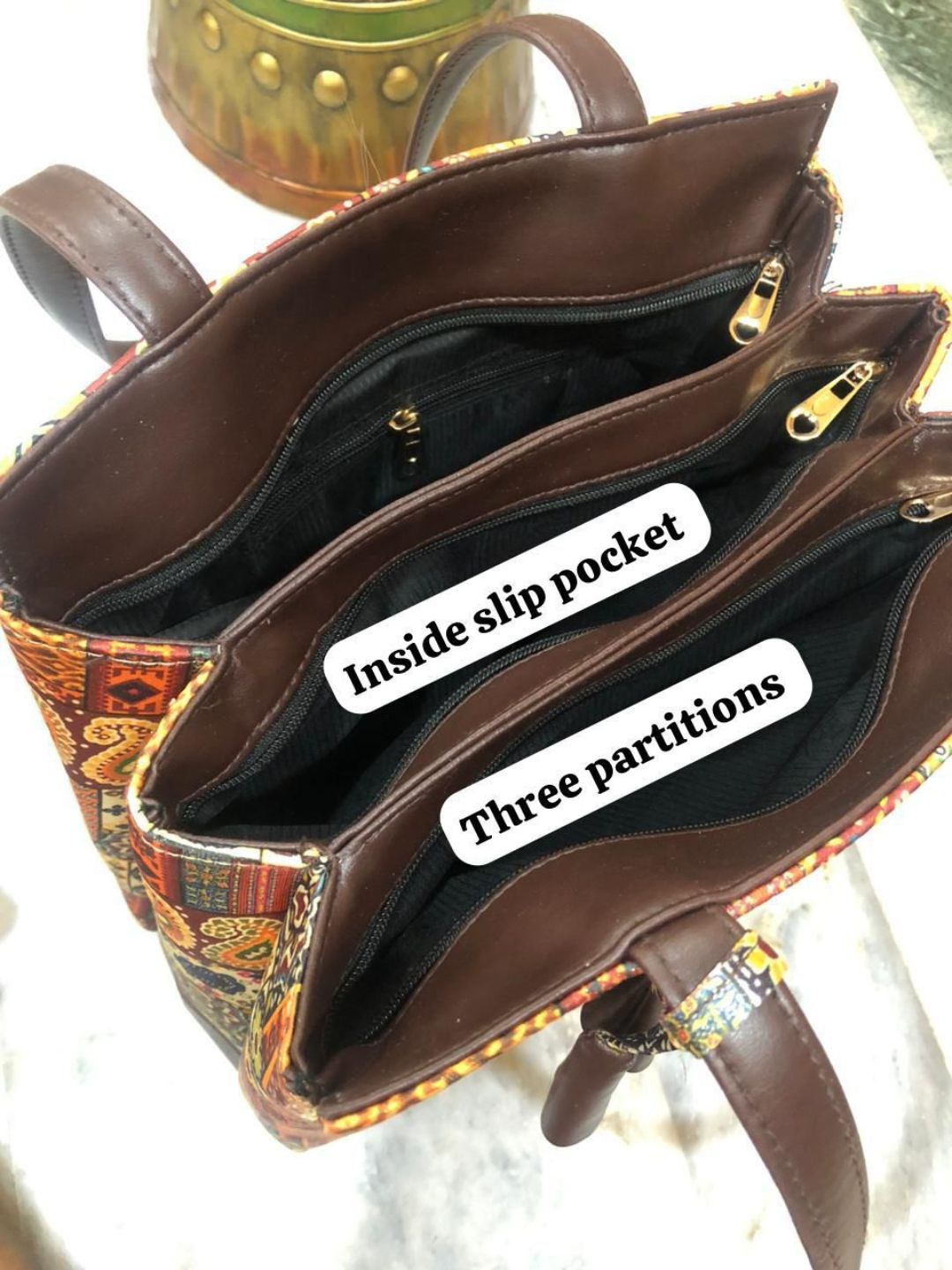 Cotton & polyester prints,Triple partition tote bag