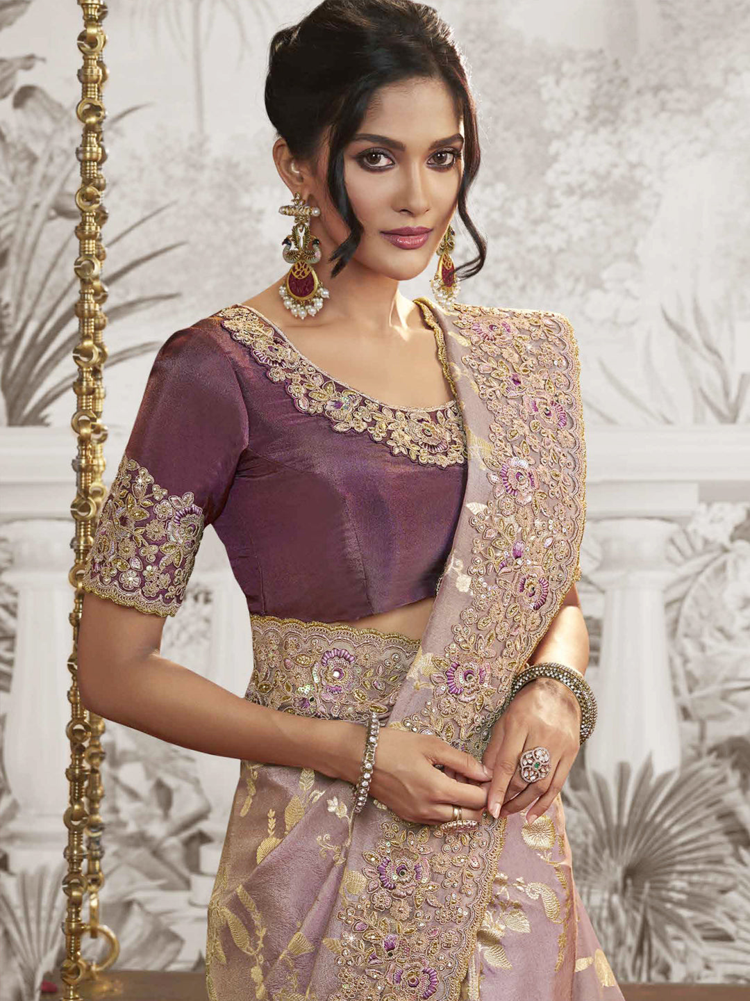 Embroidered Silk Traditional Partywear Saree In Violet Color-81740
