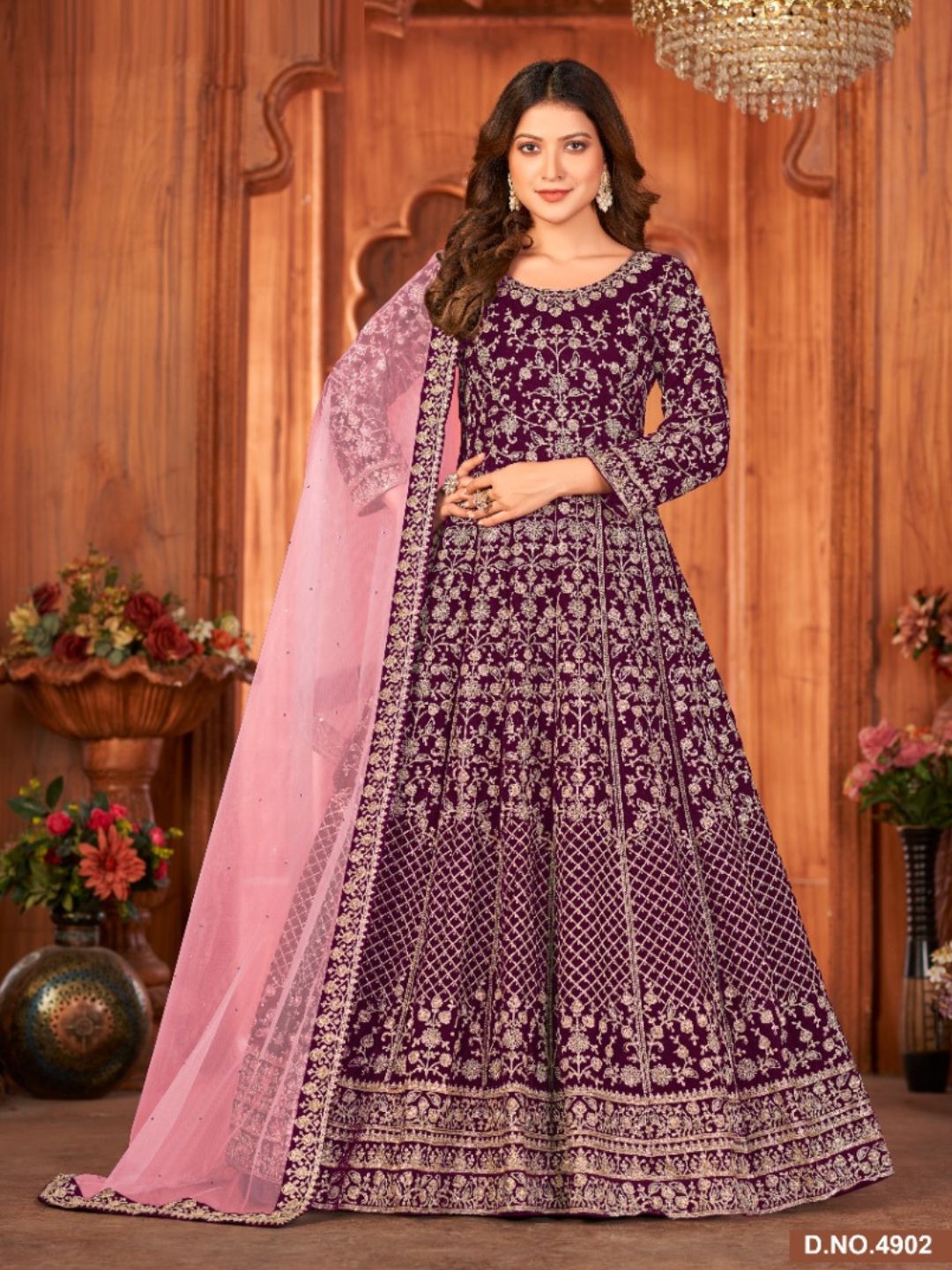 Zari Velvet Party Wear floor length Salwar Kameez In Purple