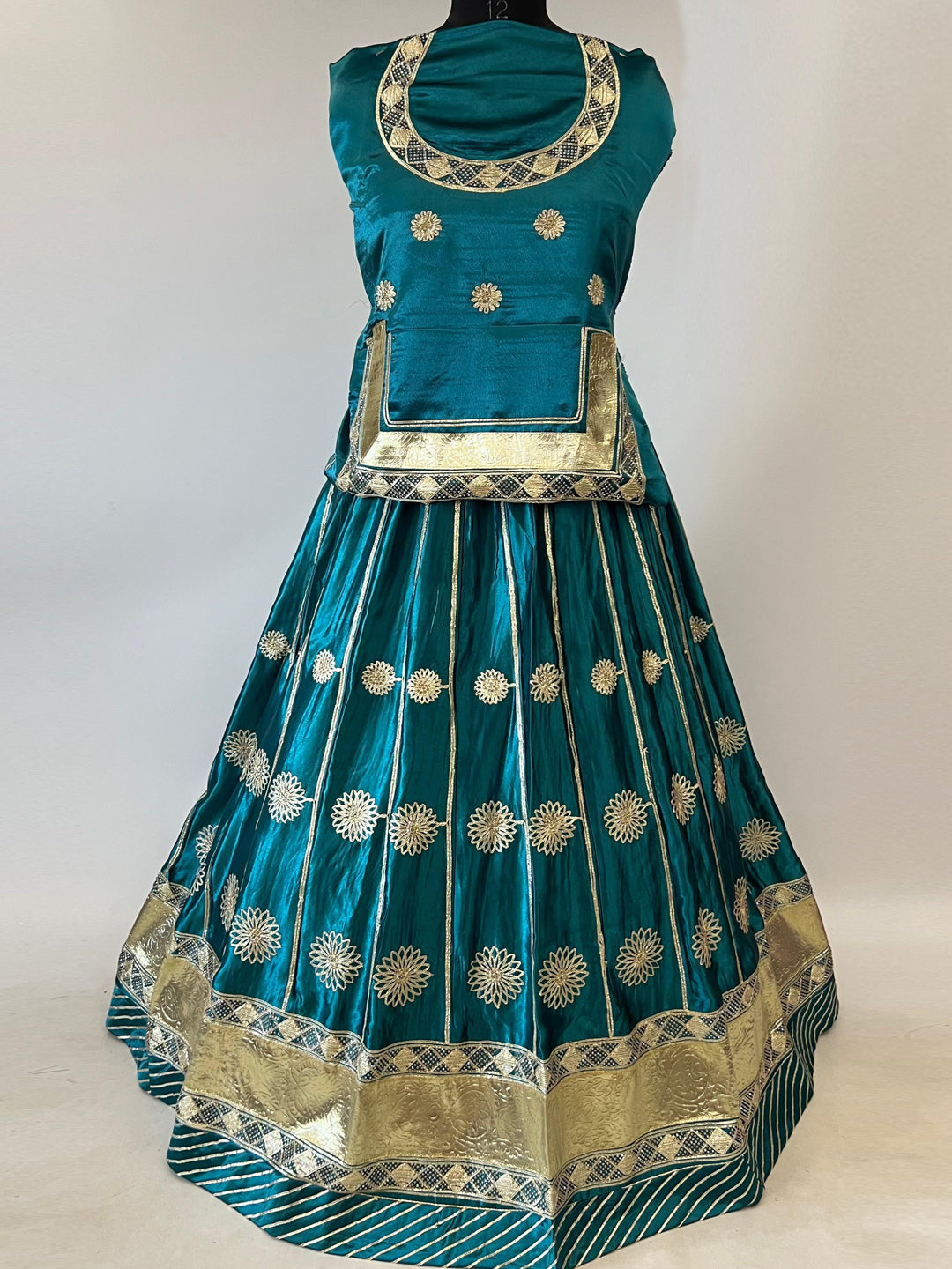 4 Meter full Gher Heavy Satin Wedding Sangeet Rajputi Poshak with Gota and Siroshi Work In Blue color-91340