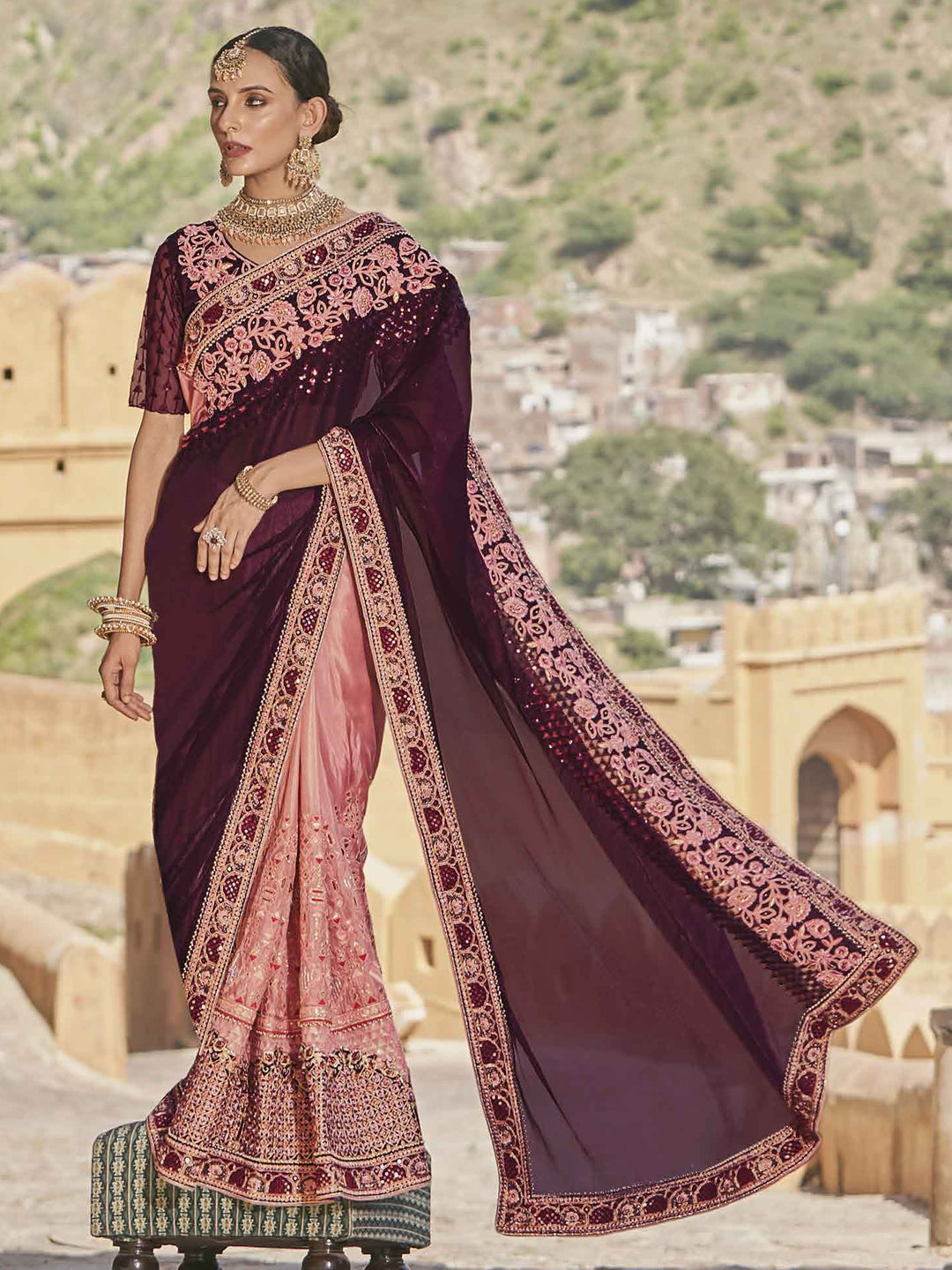Embroidered Blooming Satin Bafi Traditional Partywear Saree In Purple Color-81670