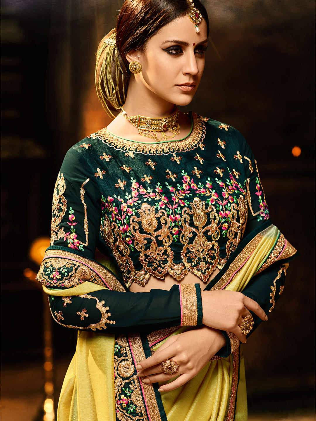 Work: Zari, Resham embroidery with stone wordk and lace border
