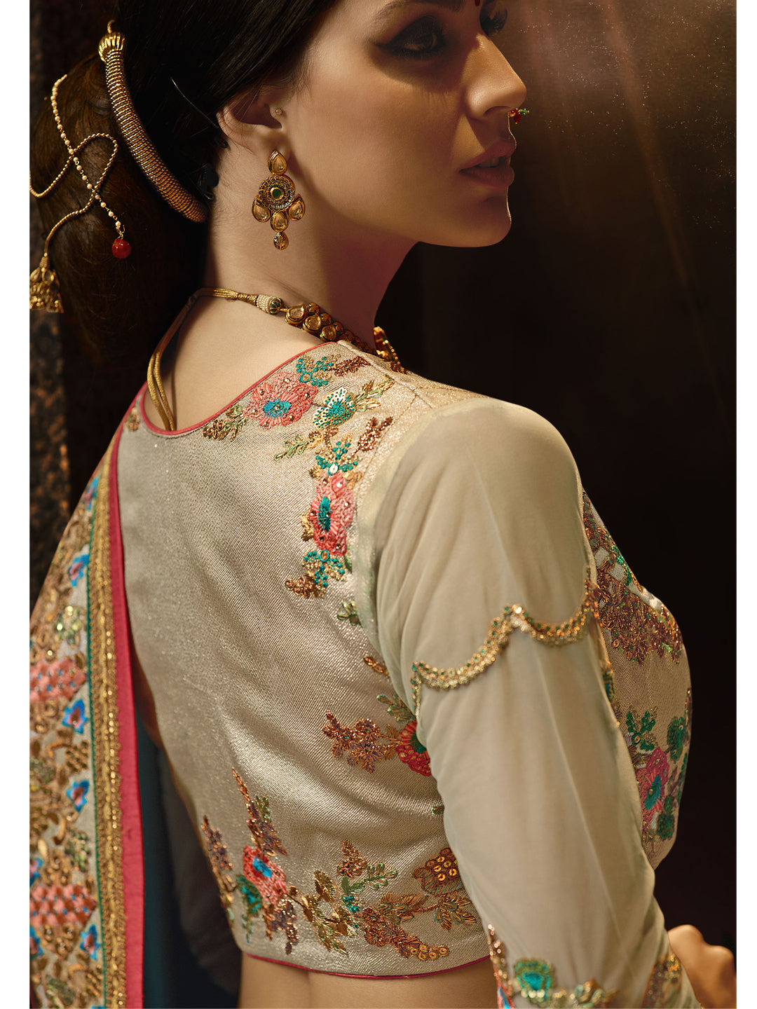 Work: Zari, Resham embroidery with stone wordk and lace border