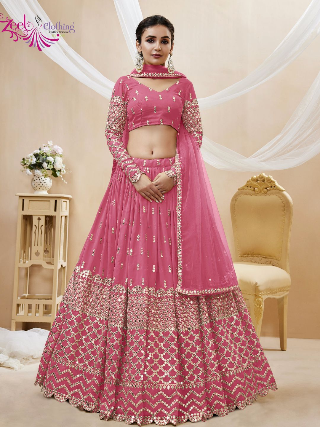 Embroidered Georgette Lehenga in Pink