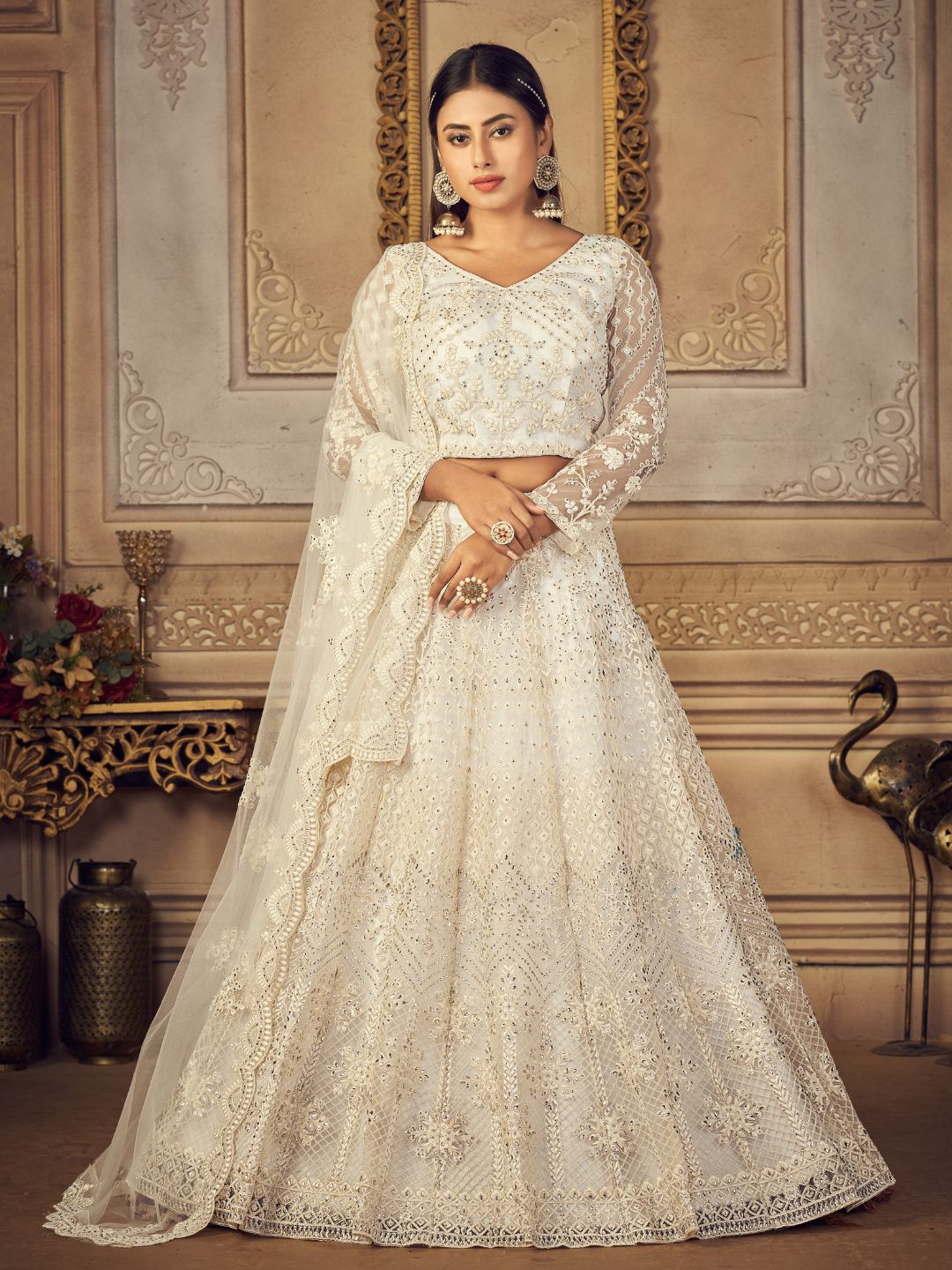 Embroidered Net With Banglori Silk Bridal Lehenga in White