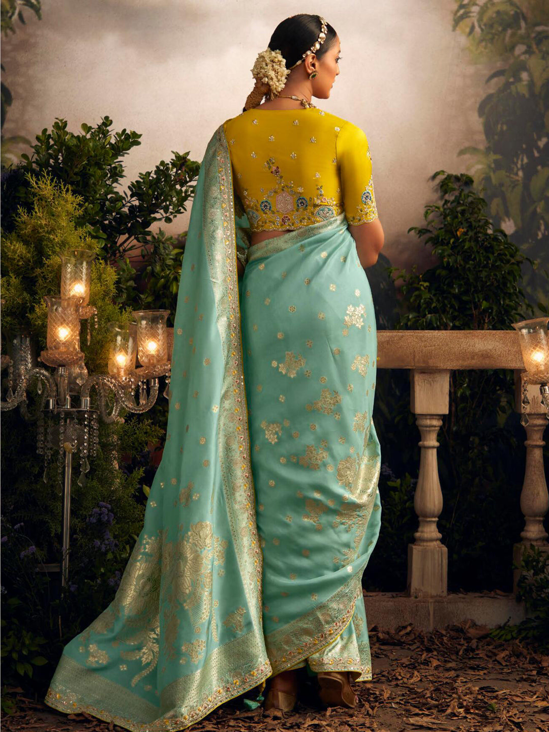 Embroidered Pure Viscose Dola Silk Traditional Bridal Saree In Blue Color-81675