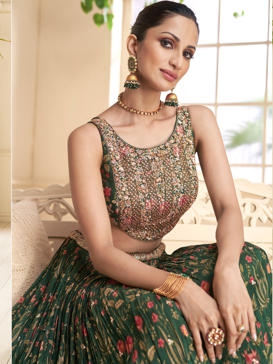 Embroidered Silk Georgette Sangeet Mehedi Lehenga in Green Color-81351