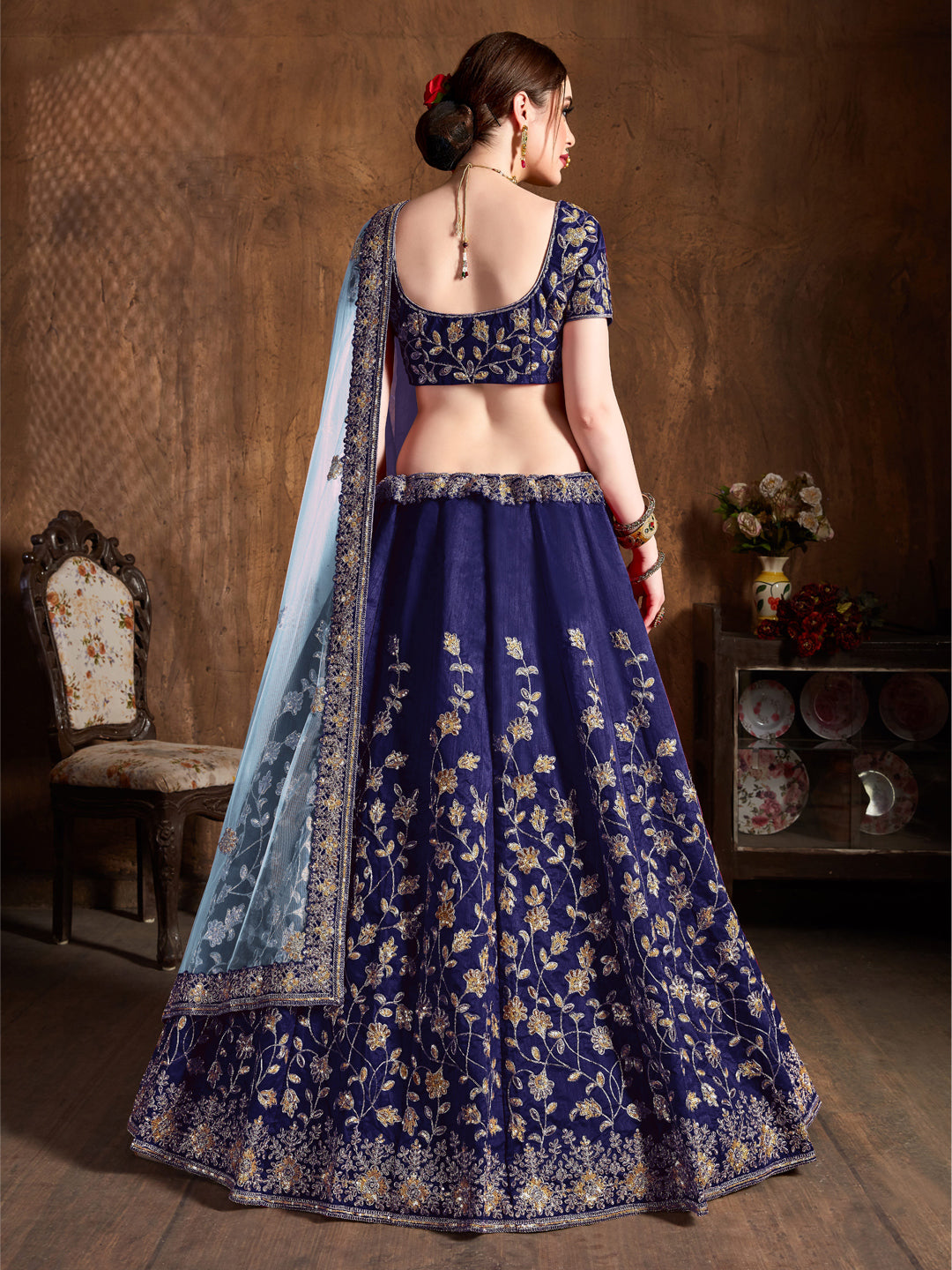 Raw Silk Engagement Sangeet Lehenga with Embroidered work in Blue color-82097