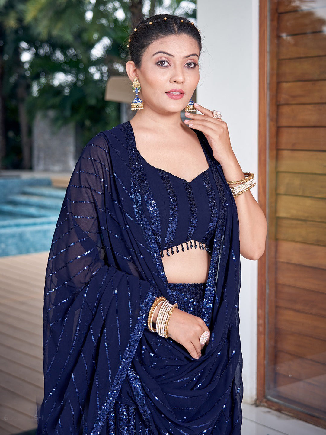 Georgette Traditional Partwear Reception Lehenga In Blue color-41091