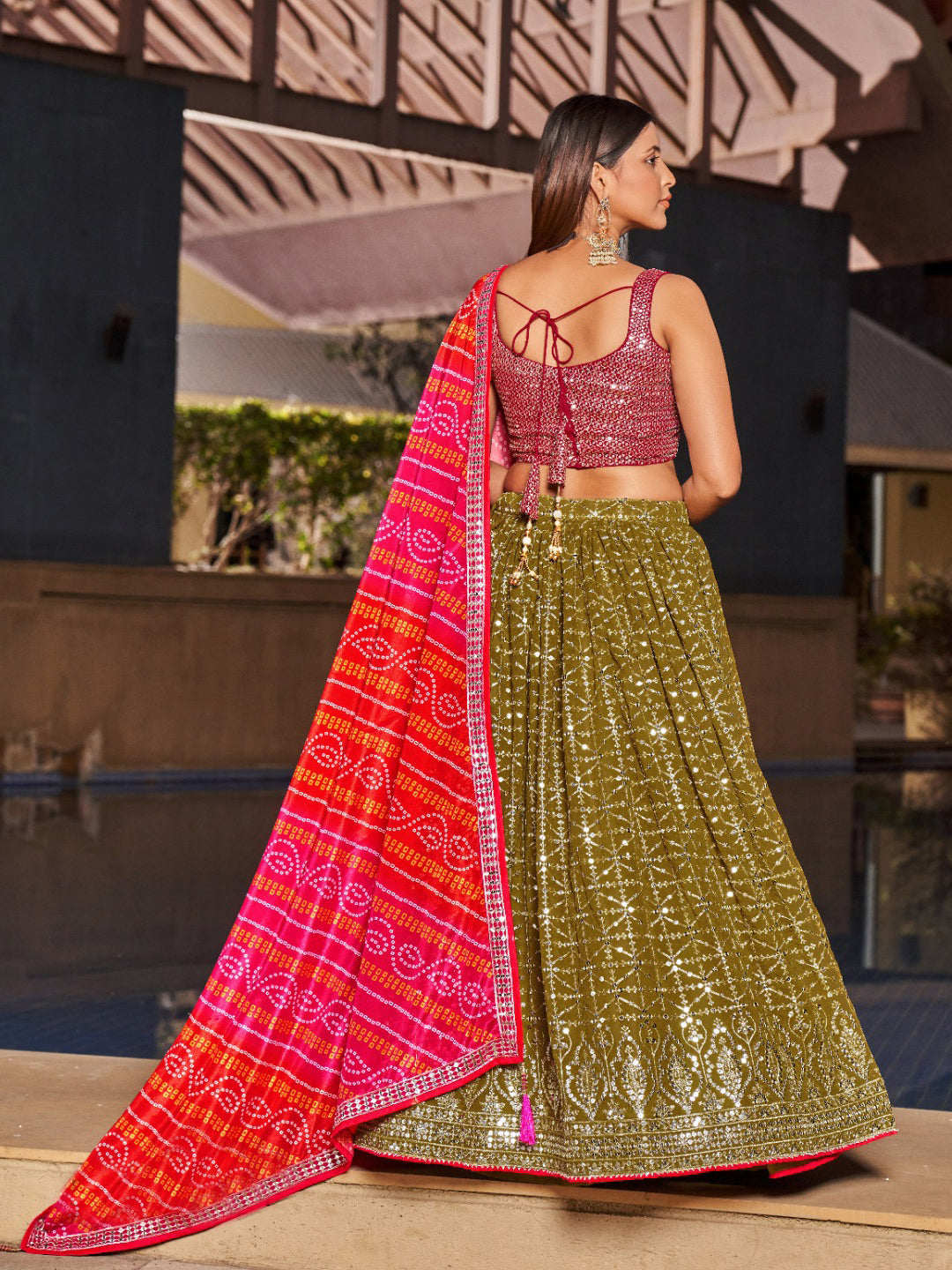 Georgette Traditional Reception Semi-Stitched Lehenga Choli In Green color-40986