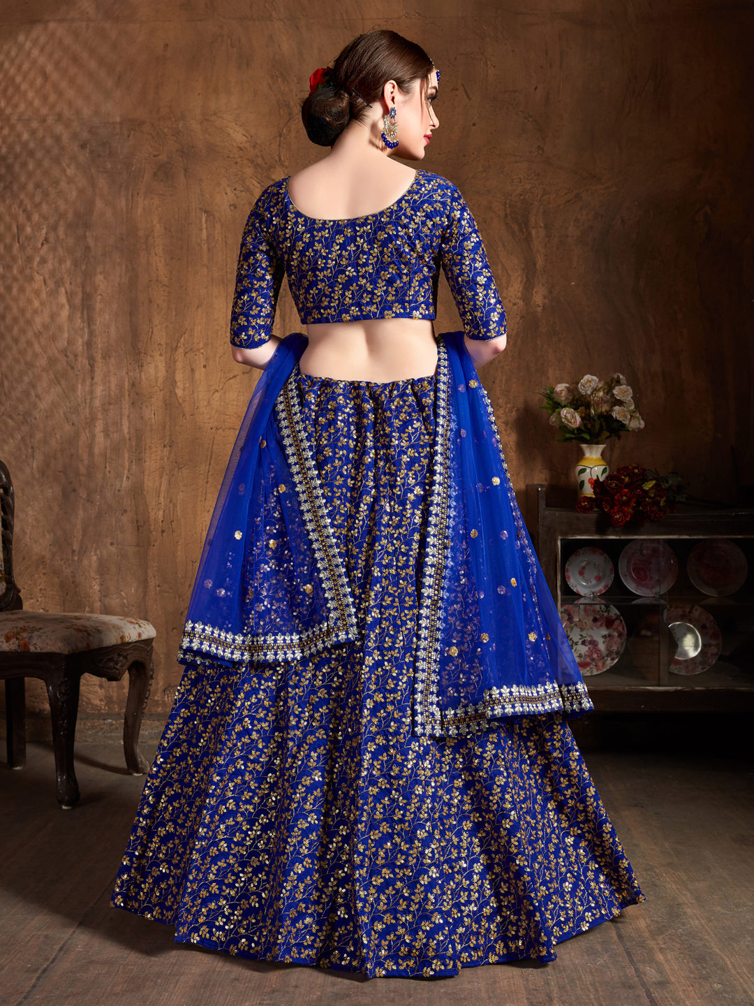 Raw Silk Engagement Sangeet Lehenga with Embroidered work in Blue color-82103