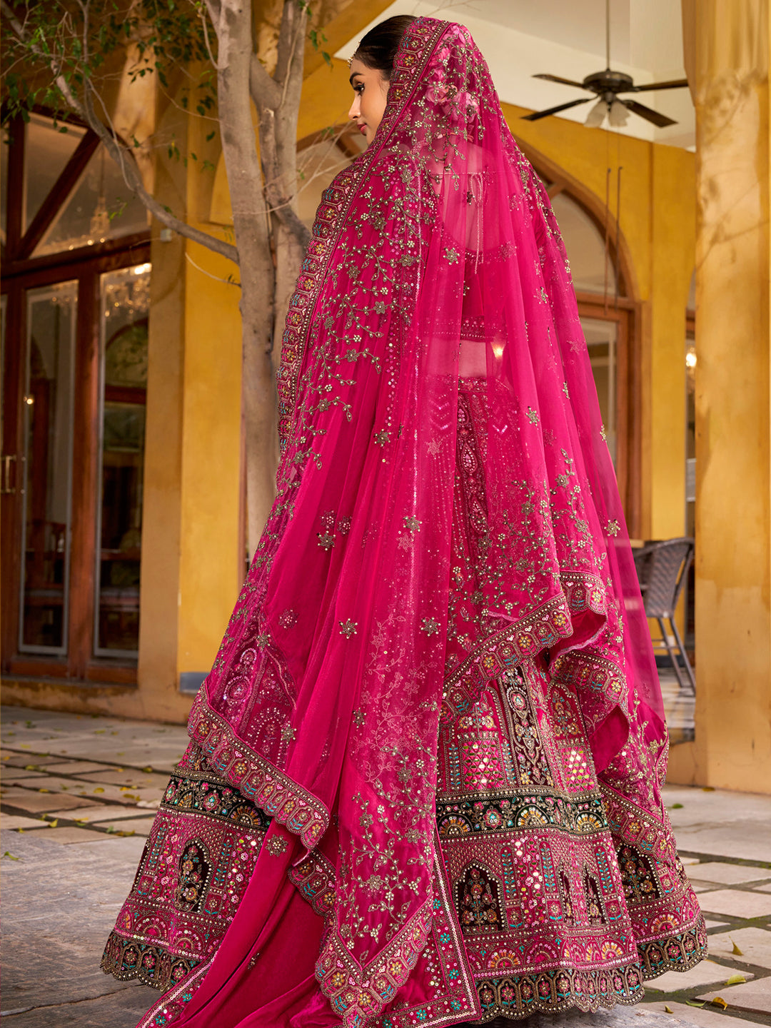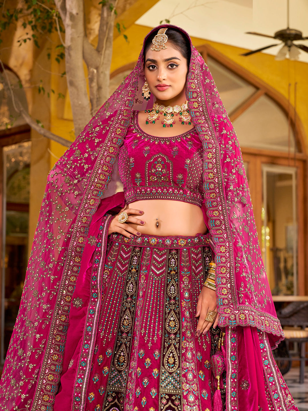 Silk Traditional Wedding Reception Bridal Lehenga In Pink color-41097