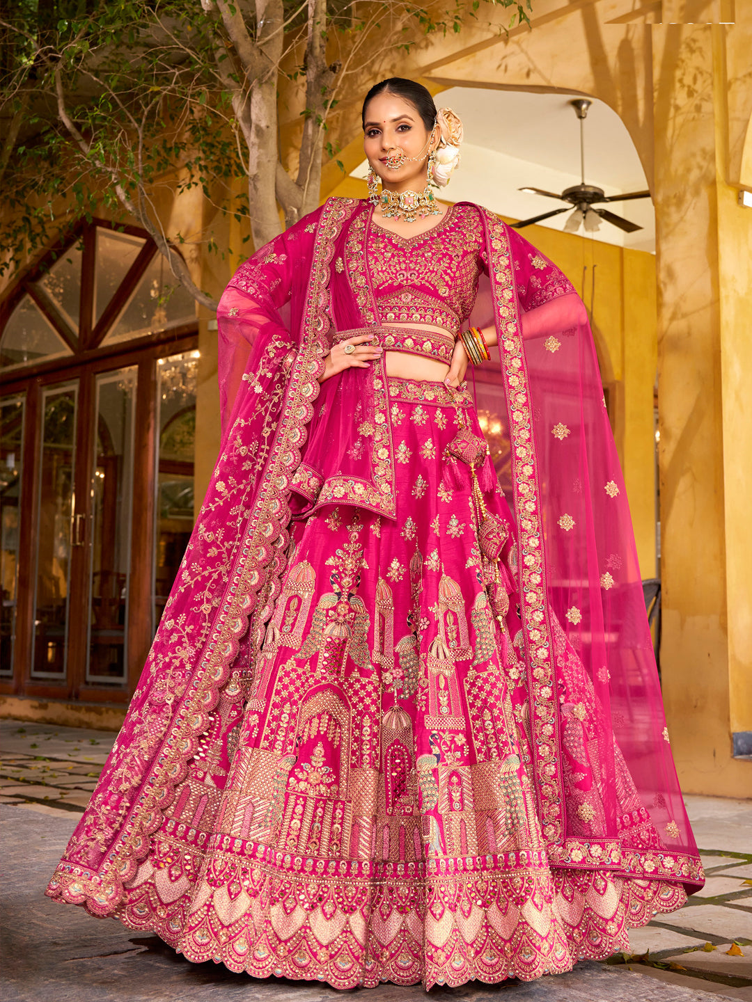 Silk Traditional Wedding Reception Bridal Lehenga In Pink color-41094