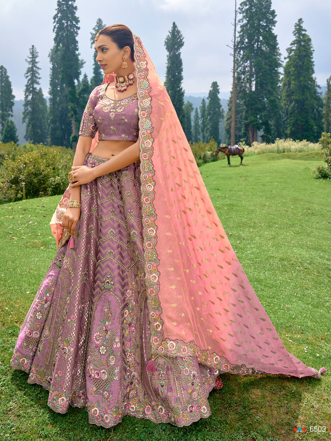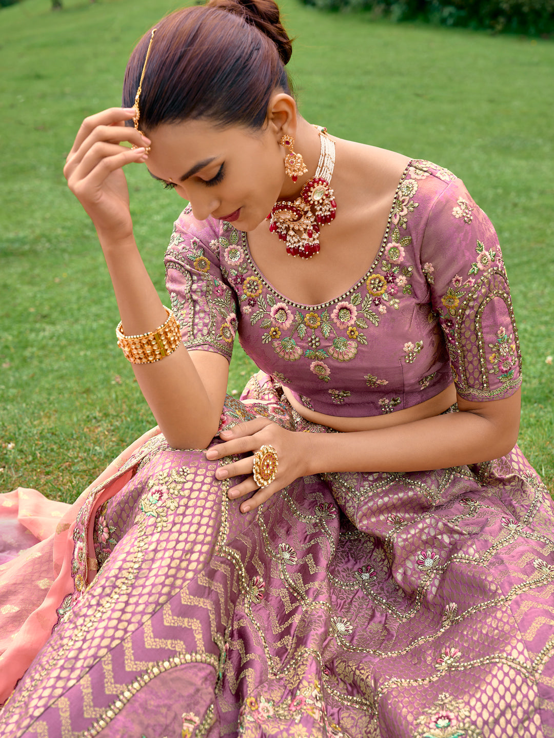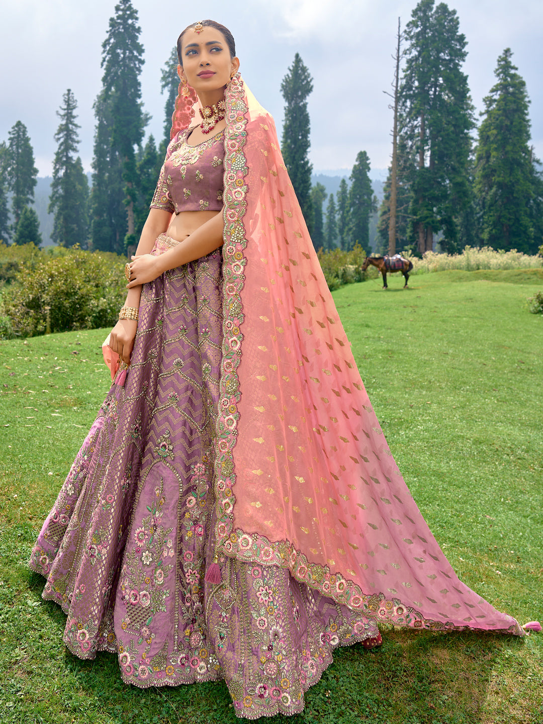 Silk Wedding Lehenga with Zari work in Purple-81684
