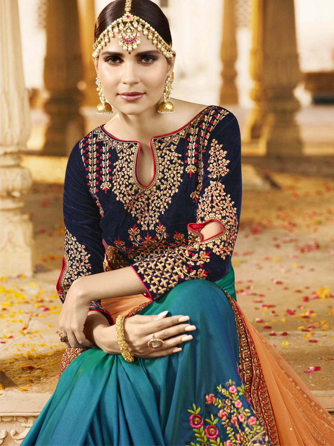 Work: Zari, Resham embroidery with stone work