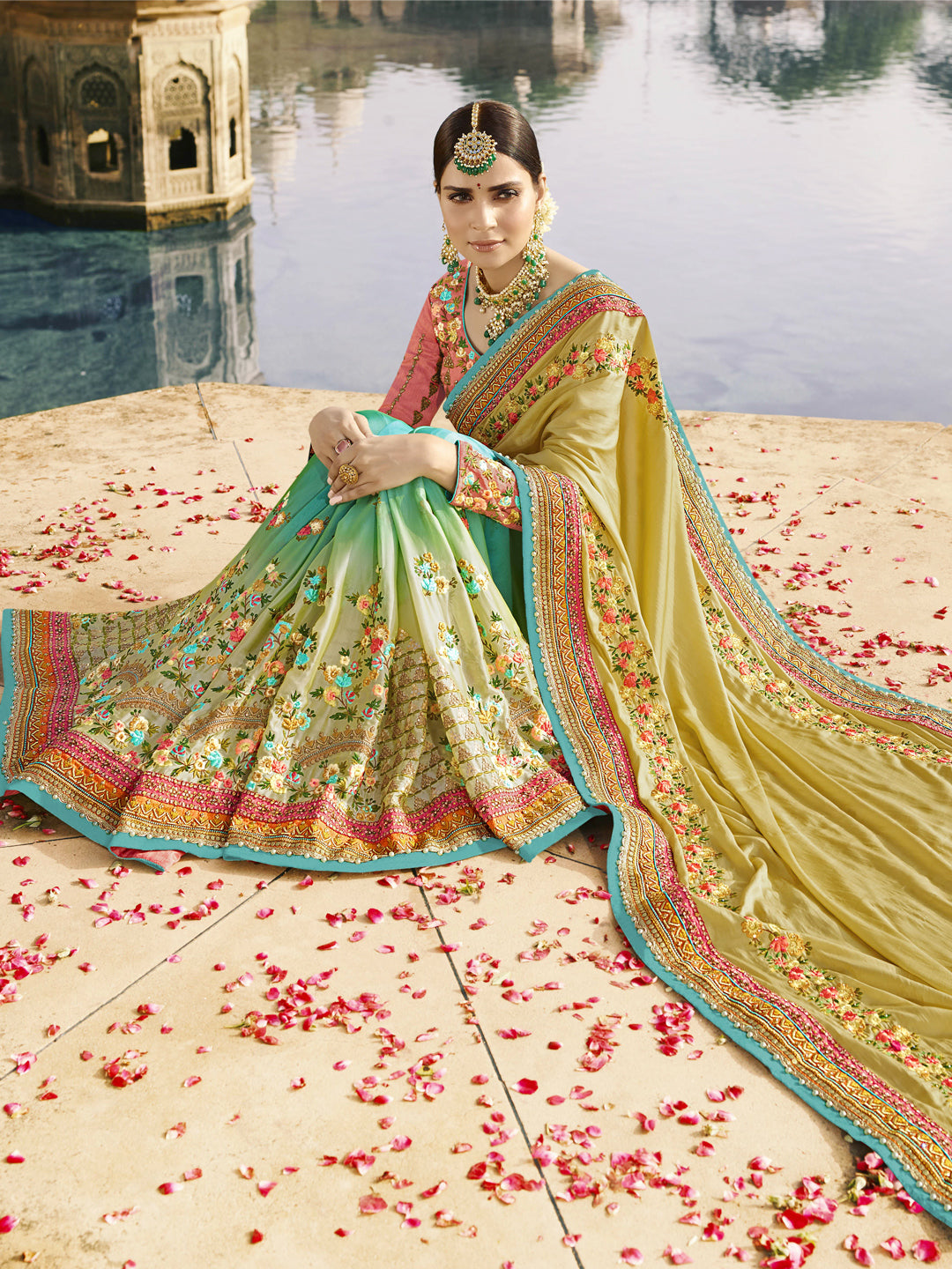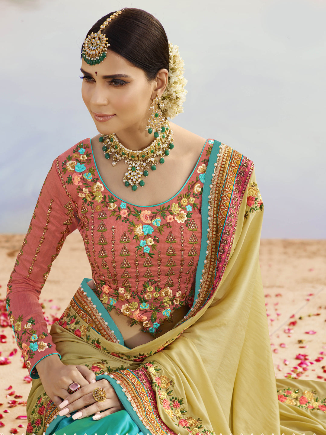 Silk Wedding Saree with Embroidered Border in Lemon Yellow color-81844