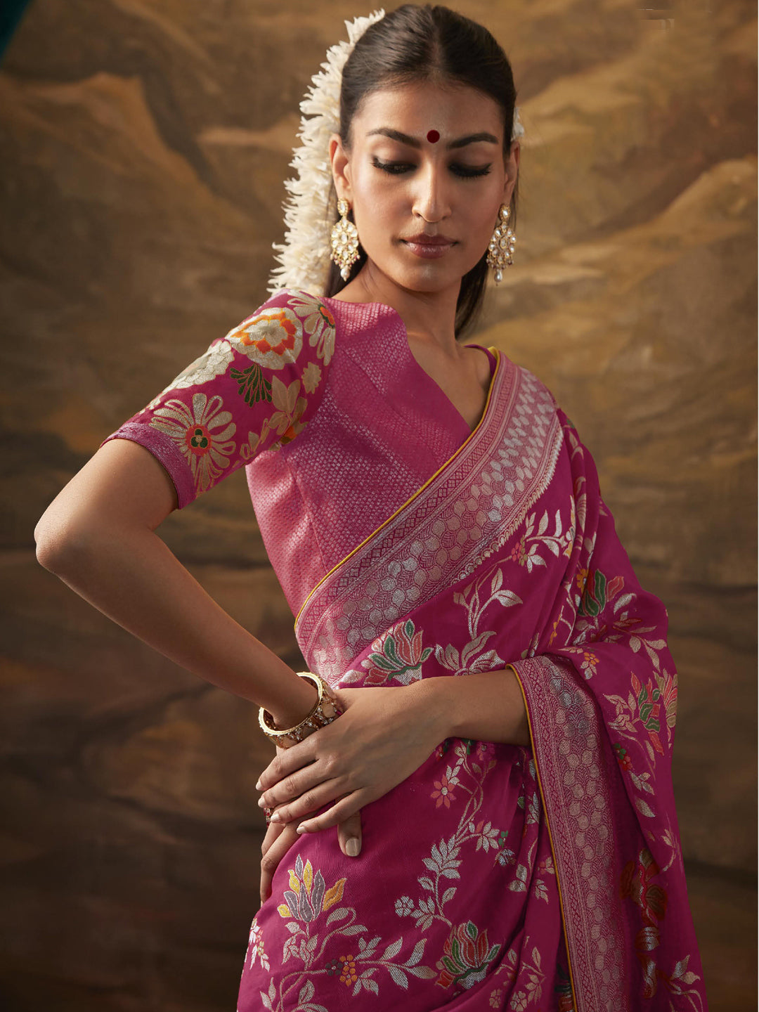 Fabric: Pure Dola Silk & Enhanced With Tassels, Zari Work And Woven With Resham In Floral Motifs