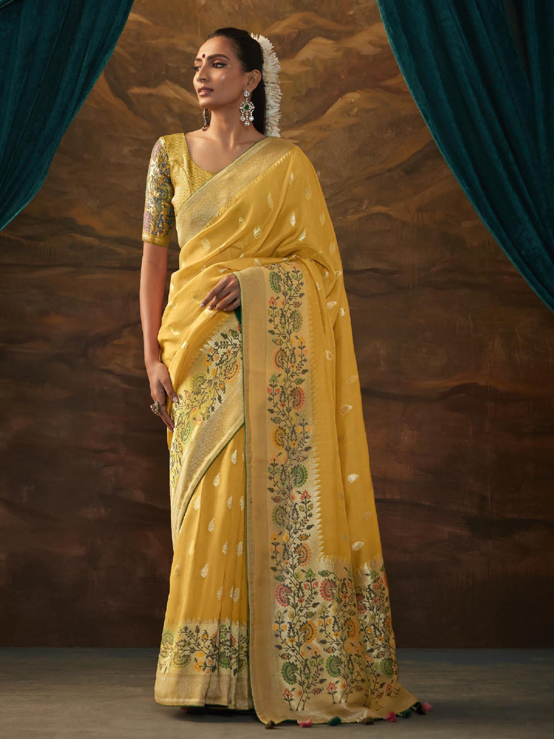 Fabric: Pure Dola Silk & Enhanced With Tassels, Zari Work And Woven With Resham In Floral Motifs